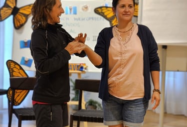 Lydia tiene el don de transmitir su infinita energía a los demás. Las actividades con ella se convierten en un taller de exploración, donde cada unx encuentra y expresa todas sus habilidades y potencial.